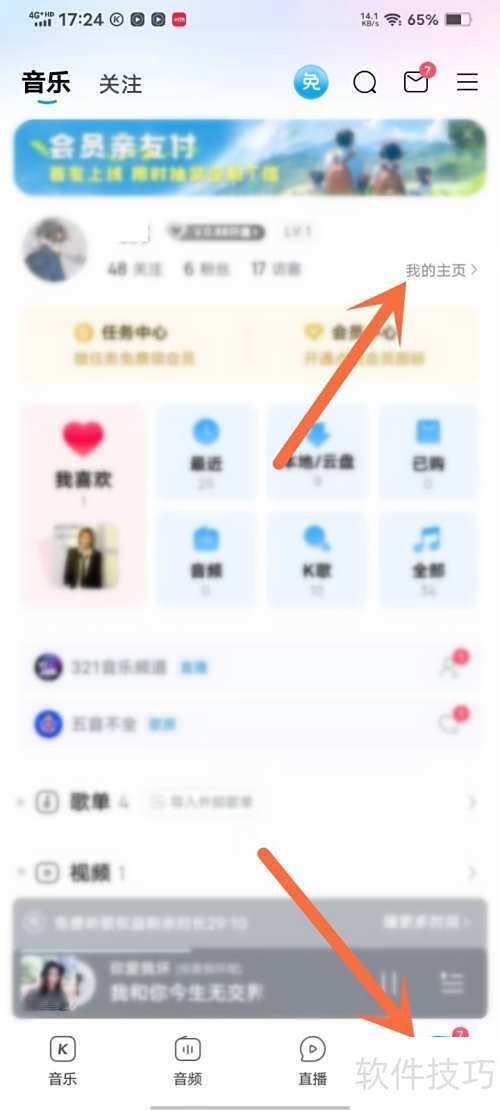 1、 打开酷狗音乐,进入个人页面,点击右上角我的主页进入。