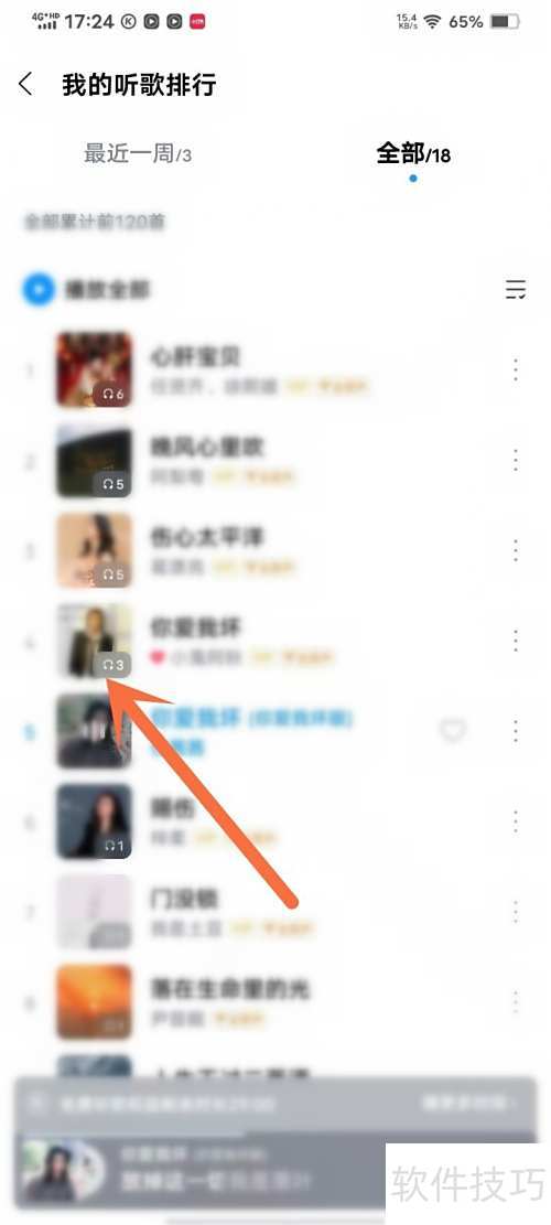 3、 打开我的听歌排行,歌曲封面显示播放次数。