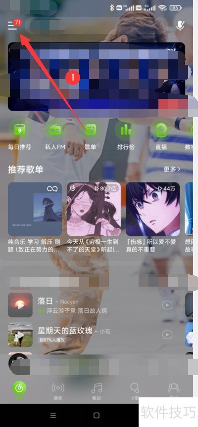 2、 进入网易云音乐,点击左上角设置按钮即可。