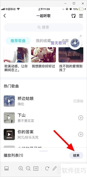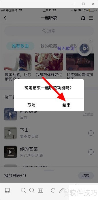 有时QQ好友邀你一起听歌,若中途想退出,可随时结束共享听歌状态。