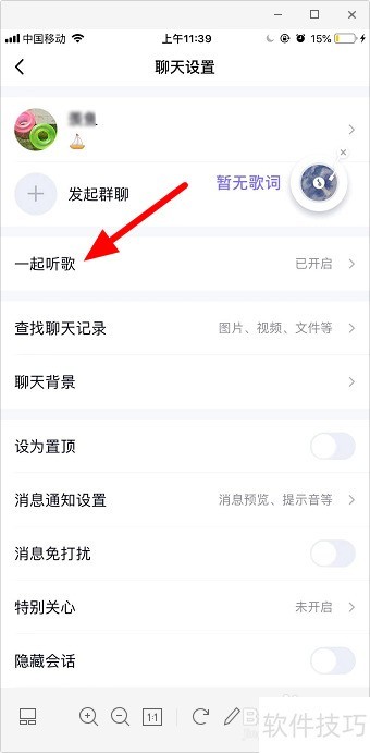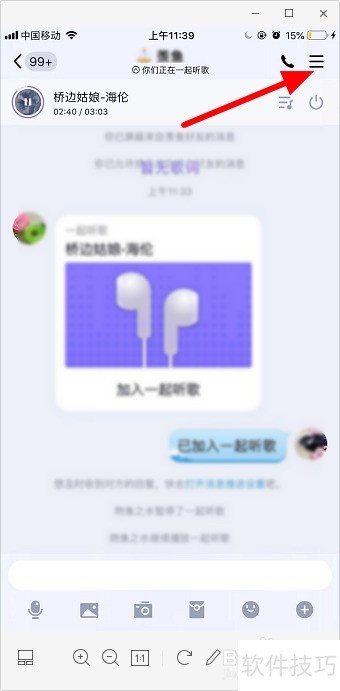 6、 打开QQ,进入好友聊天窗口,开启一起听歌功能。