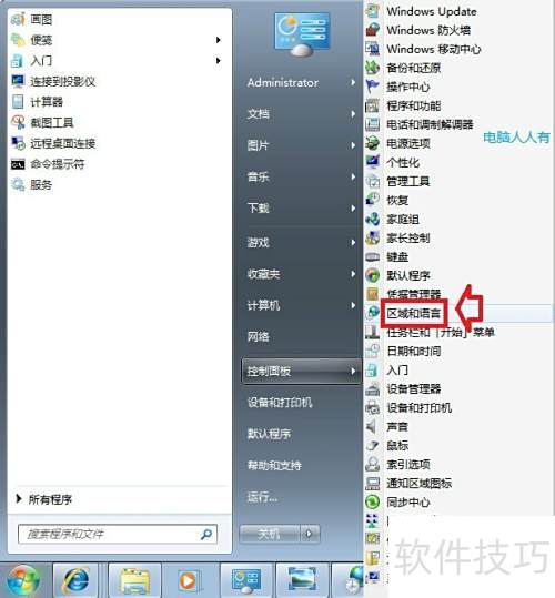 1、 进入控制面板调整区域与语言设置