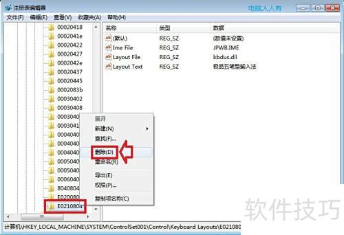 8、 找到后右键点击极品五笔并删除