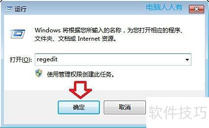 5、 按下菜单中的,输入 regedit 后回车,即可启动注册表编辑器。