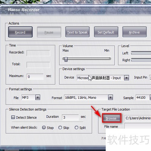 如何更改Hanso Recorder录音软件的文件保存路径?