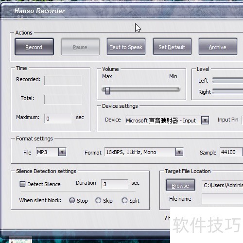 1、 单击Hanso Recorder录音软件的图标即可启动程序。