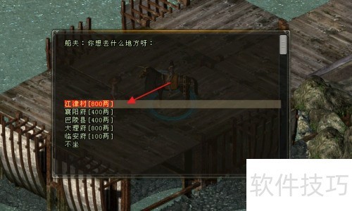 4、 乘船抵达江津村,小地图显示玩家已到达该村位置。
