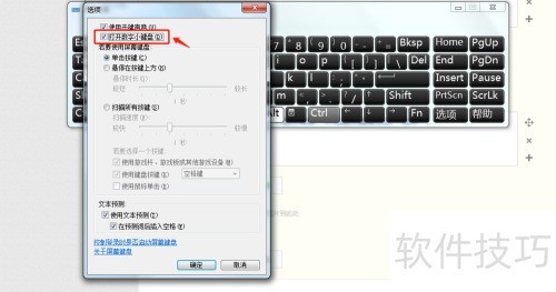 3、 此时将出现虚拟键盘,点击其上的选项按钮即可。