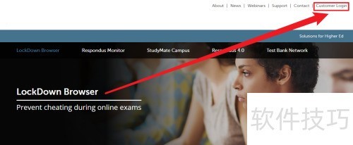 1、 首先访问lockdown浏览器官网,点击右上角客户登录按钮,完成登录操作。
