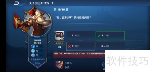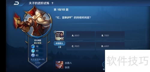 5、 这道题询问的是红蓝BUFF效果能持续多长时间。