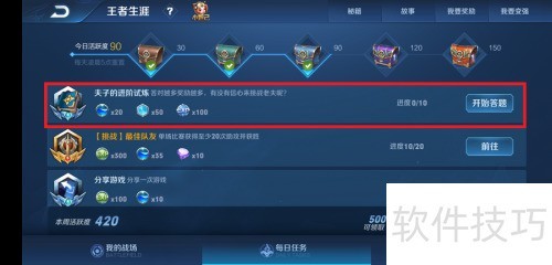4、 点击妲己头像进入每日任务,找到夫子进阶试炼并点击开始答题即可参与。