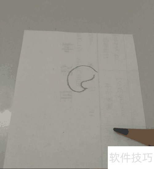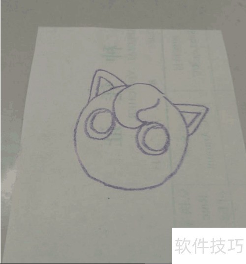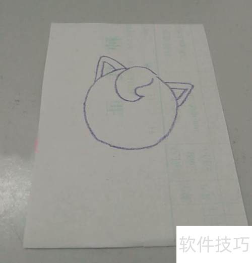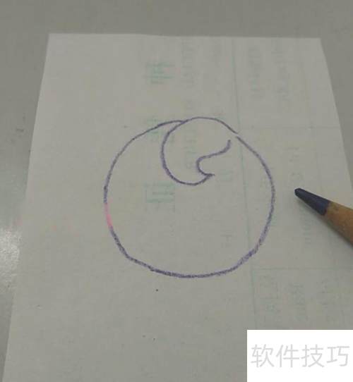 2、 用紫色笔在纸上画两条交叉的弧线,代表小精灵的头发。