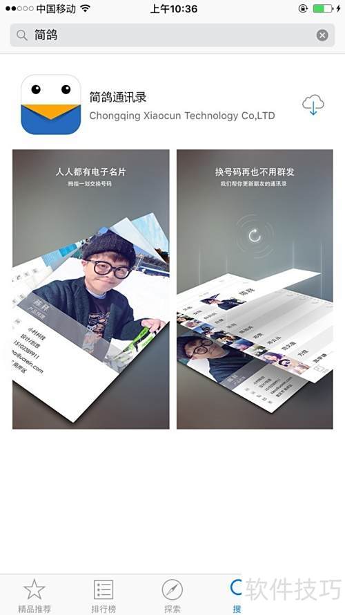 1、 简鸽通讯录,各大应用市场均可下载。