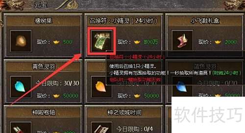 4、 在元宝商店里用元宝兑换小精灵召唤符,轻松获取召唤道具。