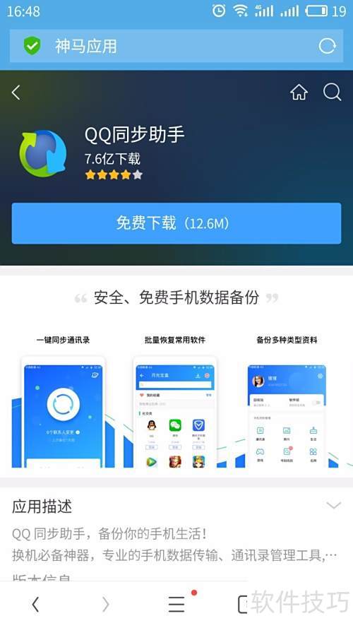 1、 在手机应用商店搜索QQ同步助手,下载并安装官方软件即可。