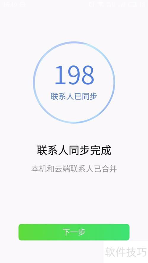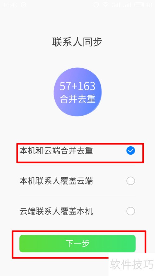 2、 启动软件后,系统将提示是否重新备份本地与云端联系人。选择立即开启,再选本机和云端合并去重,随后点击下一步即可完成操作。