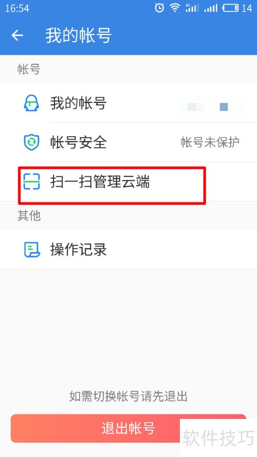 5、 在电脑上编辑通讯录时,可打开手机APP,进入我的账号,点击头像,选择扫一扫管理云端,即可同步操作,方便快捷地修改和管理联系人信息。