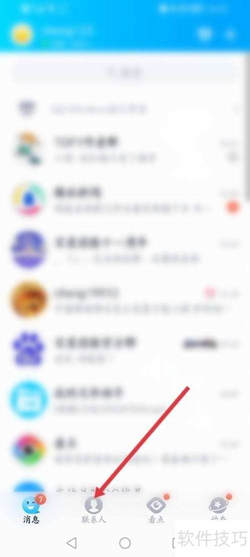 2、 打开手机QQ,进入联系人页面。