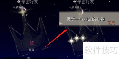 1、 在遇境大厅点击星盘,选择一位好友,接收其赠送的礼物即可完成任务。