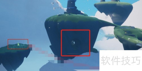 2、 在云野地图左侧的浮岛区域,空中有遥鲲携带绿色光芒,光芒会从其身上脱落,最终掉落在左侧小岛上,需及时收集。
