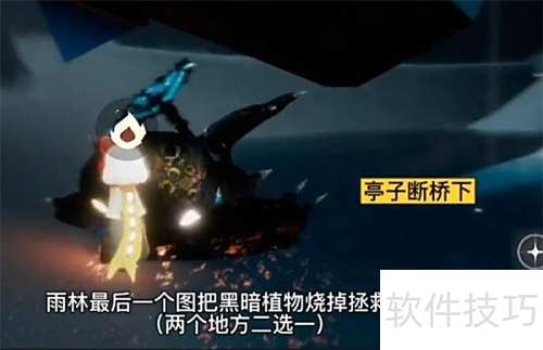 6、 在断桥亭下烧毁黑暗植物,拯救遥鲲,完成雨林最终任务。