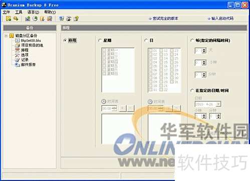 4、 第三步:该软件具备定时备份功能,用户只需点击左侧的排程按钮,设置所需的备份日期与时间,确认无误后,点击右下角的应用按钮即可完成设定,操作简便,具体界面参考下图所示。