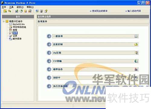5、 第四步:用户可在软件中对备份选项进行详细配置,包括直接复制、ZIP压缩、FTP传输、磁带备份以及执行其他程序等,具体设置所示。