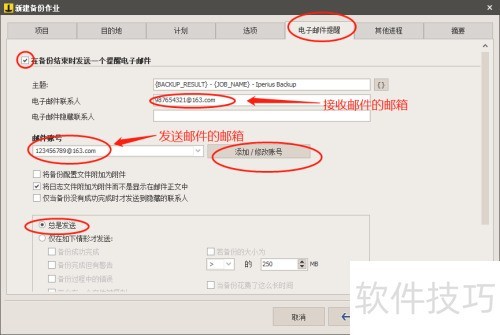 2、 开启电子邮件提醒,需输入接收与发送的邮箱地址(两者不同),若使用163邮箱,请先启用SMTP功能。