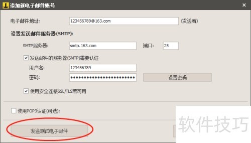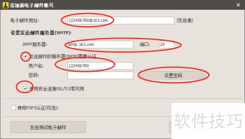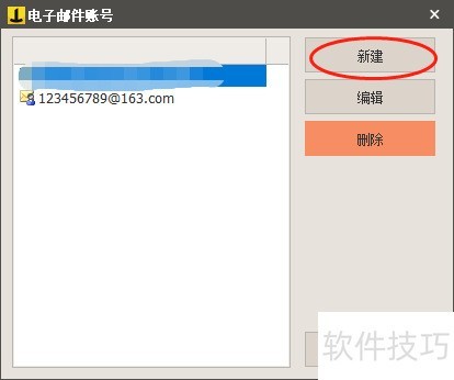 4、 点击新建,输入已开启SMTP功能的163邮箱,用户名填手机号,密码使用客户端授权码(即密码P)。