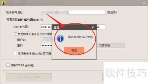 5、 点击发送测试邮件后,稍等片刻便会提示发送成功,同时收件箱中也能收到该邮件,表明邮箱配置已完成。