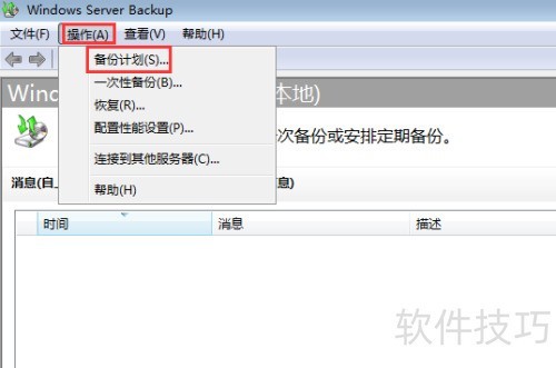 5、 在窗口顶部找到操作选项,点击后从下拉菜单中选择备份计划。