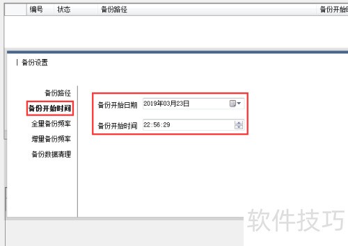 13、 点击左侧的备份开始时间,在右侧选择具体的日期与时间进行设置。