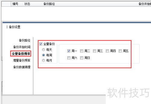 14、 在左侧选择全量备份频率,右侧勾选全量备份,并根据需求设定相应的备份周期。