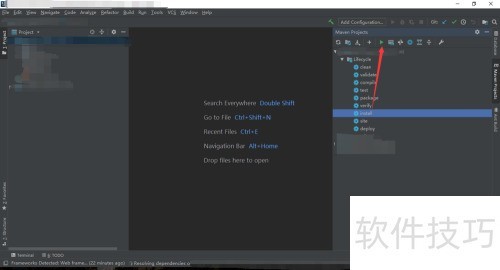 5、 当Maven中包含你的项目时,进入根目录,选中其中的install项,点击顶部的运行按钮即可,操作所示。