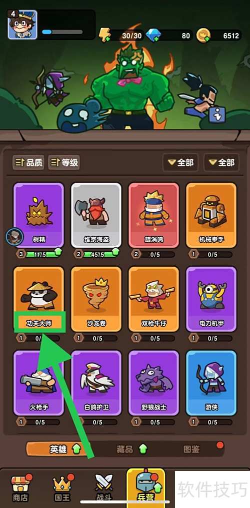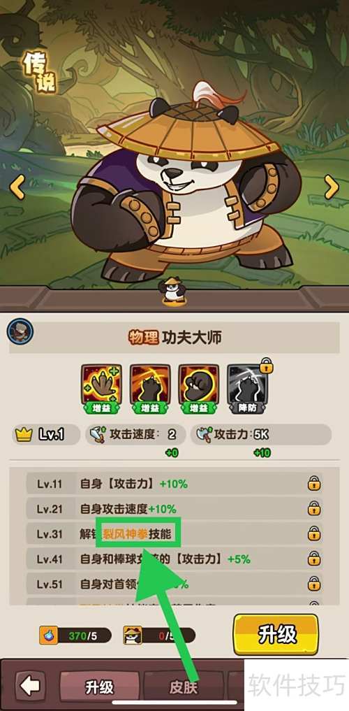 3、 进入功夫大师界面,选择裂风神拳技能即可完成操作。