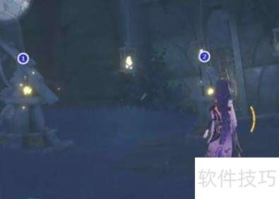 2、 传送抵达后,击打三处机关,调节吊灯至准确方位。