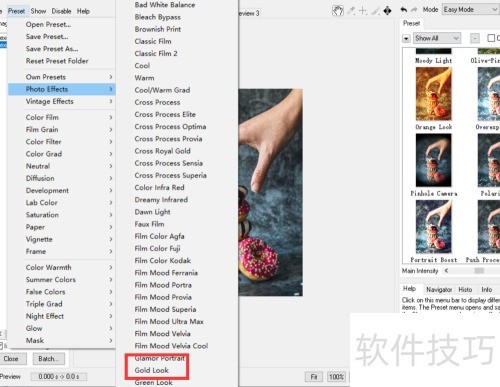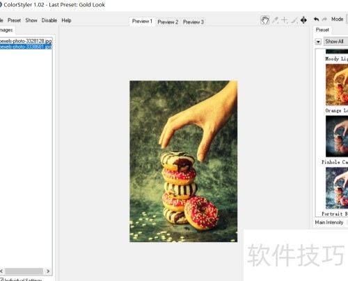 只需选择colorstyle中的gold look滤镜,轻松实现金色风格效果。