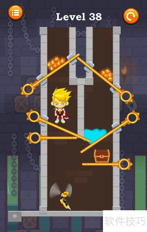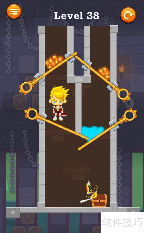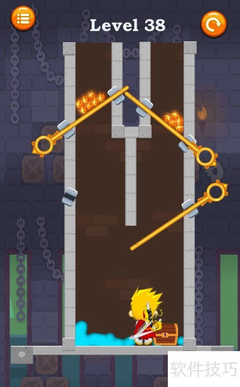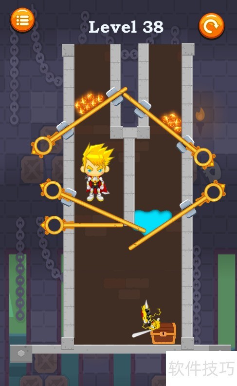 4、 拔出金发少年下方的斜插销,打开宝箱即可通关。