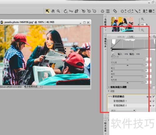 2、 点击右上角的彩色控制点图标即可。