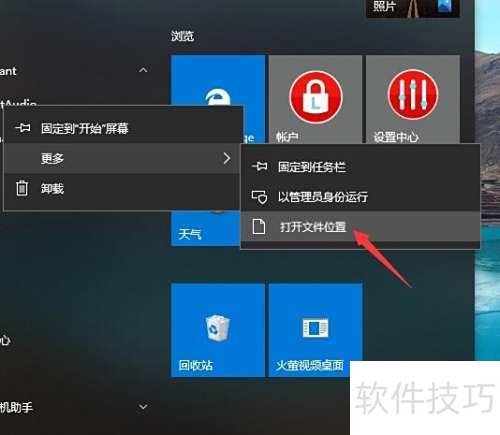 4、 在更多下拉菜单中选择打开文件位置选项。