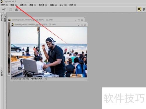 2、 点击顶部编辑窗口按钮展开下拉菜单。