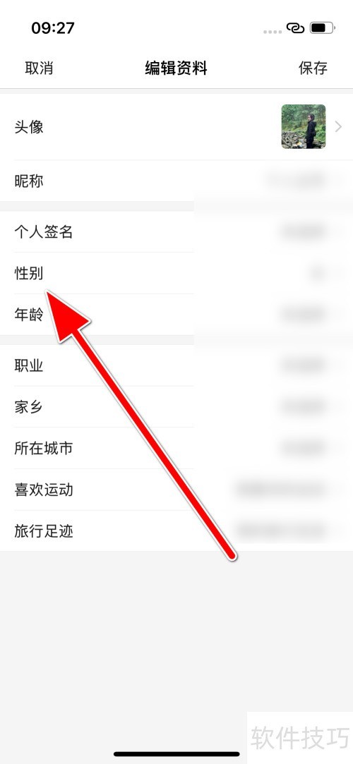 3、 点击性别选项进行设置。