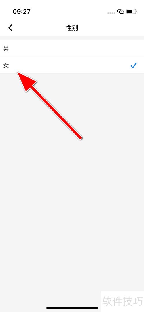 4、 第四步:选定性别后,完成个人性别设置。