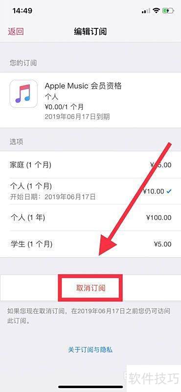 4、 在Apple Music中申请退款或取消订阅,只需点击相应选项按提示操作即可完成。