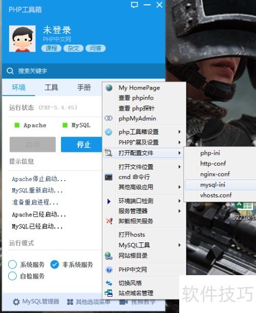 3、 重启PHP工具箱