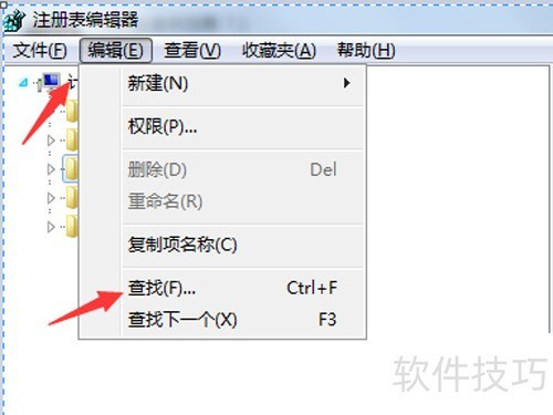 5、 在注册表顶部选择编辑,然后点击查找功能。