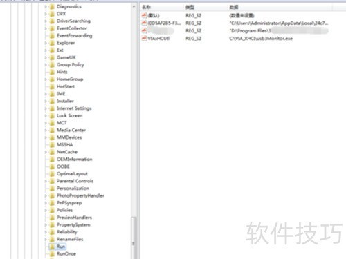 3、 进入注册表编辑器,依次展开路径 HKEY_LOCAL_MACHINESOFTWAREMicrosoftWindowsCurrentVersionRun,找到该项后进行相应操作。