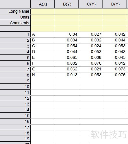 1、 在Origin中输入所需绘图数据,如示例所示。
