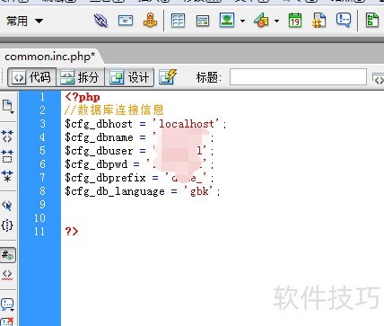 3、 使用Dreamweaver或其他编辑器打开common.inc.php文件,查看其内容结构。