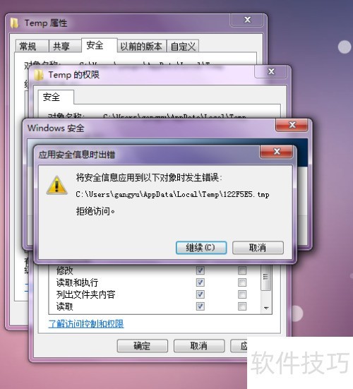 9、 此时可能出现C:UsersXXXAppDataLocalTemp……拒绝访问的提示,点击取消即可,若弹出警告窗口,可忽略提示,直接点击确定继续操作。
